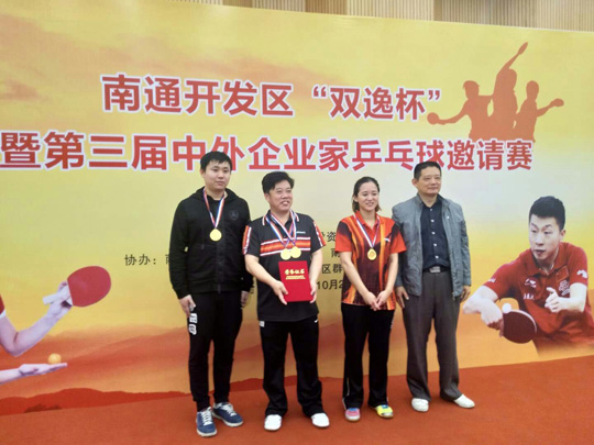 10月24日,三圣石墨代表隊參加南通開發區“雙逸杯”暨第三屆中外企業家乒乓球邀請賽,通過一天的緊張角逐,過關斬將,最終在24支代表隊中脫穎而出,獲得本次比賽冠軍。