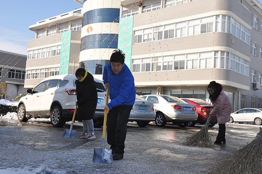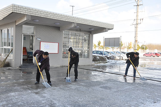 26日一大早,三圣高管團隊在馮圣君董事長的帶領之下,操起鐵鍬,揮舞掃帚,分區分片,親自清除廠區主干道上的結冰積雪。為了安全與暢通,現場熱火朝天。