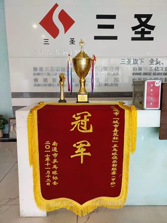 在二〇一七年南通市“城市嘉苑杯”乒乓球俱樂部聯賽甲組比賽中,三圣江淮乒乓球俱樂部,不懼強手,敢打敢拼,再次榮獲冠軍。