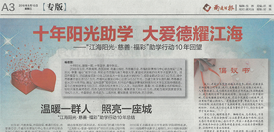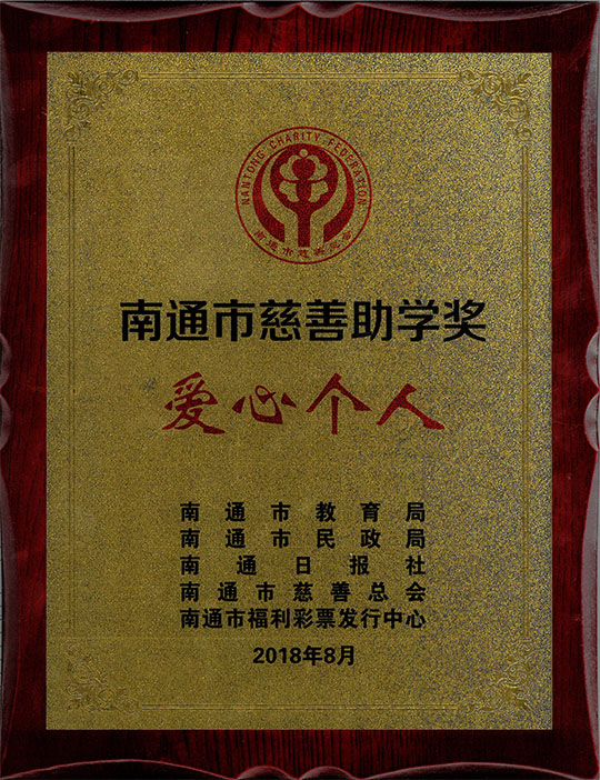 南通三圣董事長馮圣君夫婦榮獲“南通市慈善助學獎”愛心個人