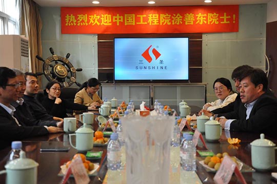 涂院士親證了南通三圣20多年來的巨大發展變化,贊賞了我司在石墨科技、化工環保設備、工業廢酸資源化循環再利用(變廢為寶)、高效節能等領域取得的優異成績,肯定了把世界先進技術和人才引進到三圣的做法。