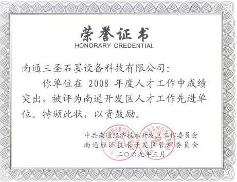 我公司被南通經濟技術開發區評為2008年度人才工作先進單位