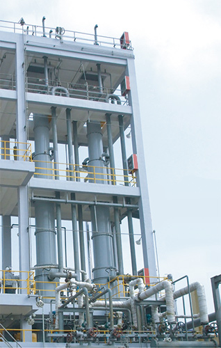 結構與特點: Cl2、H2合成、吸收、冷卻,副產尾氣再處理四個工藝程序合并在一臺設備內完成。 Cl2、H2純度、氣溫、壓力及水溫、壓力等因素在生產工藝要求范圍內,可直接獲得35%的工業純甚至試劑鹽酸。 技術特性: 本廠可根據用戶要求,生產Ф300-Ф1200等規格的本型合成爐,日產量鹽酸(折成33%濃度)3-200噸,提供安裝、調試及咨詢服務。